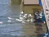 We had visited Starved Rock in the winter many years ago to spot the Bald Eagles that winter in the area. We had hiked several times in the fall as well but it has been a long while since our last visit. I was surprised to see American white pelicans swooping overhead and out over the river near the main parking lot. We saw several perched on a log snagged in the middle of the river (and cormorants on nearby logs as well). At the lock and dam there was a large flock swimming around, occasionally squabbling over something in the water, presumably a fish stunned by its passage through the dam. Turns out the pelicans are relative newcomers. Normally migrating between the Gulf of Mexico and Canada, this particular flock appears to have settled on the Illinois River as being as far north as they needed to go.