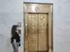 Open door policy to the governor's office. Beautiful office entry with chandeliers.