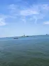 頭回望到船的前方及右方,就是《自由神像》的那個島了。
