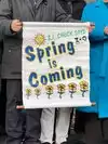 The Zoo staff set up a small stage and had their groundhog, Chuck, in a small encasement with a curtain on it. They had a local school choir sing and a local band perform their song "Staten Island Chuck" for the event. Then the politicians gave their usual long winded speeches. After that they had a small ceremony and brought Chuck out for the prediction. It is going to be an early Spring.
