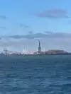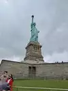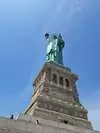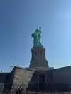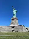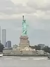 It's the Statue of Liberty, which any visitor to NYC will already know about, and very likely seen in movies, TV shows and pictures. You have a few chances to see her from water, either by ferry (the Staten Island ferry is free) or on a cruise boat, which will get you closer. But being on the island with her gives you a real sense of her height, and gives a real feeling of awe.