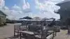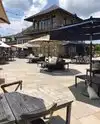 Outdoor sitting area while under cover does not offer overhead fans, which would make sitting outside and enjoying both the scenery and afternoon live music an enjoyable experience.