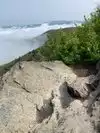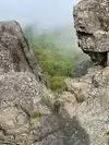 The summit was rocky but my view was kept local due to the fog yet it felt to be on top with no other visitors. Having a great hike to the summit so near a Lodge was terrific. Travel up and back was about one hour. There is a small circuit trail at the summit so you can do a loop. It also crosses a horse trail so you can return as I did with different scenery.