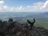 My sons insisted that I come along too along with their father for this trail as it promised a beautiful view at the end of the hike....I am not much of a walker and so I was shying away from the trail! But am I glad that my sons coxed and cajoled me to walk with them atleast this once ! The trail was an easy hike though I must confess,I had to stop twice to catch my breath !! I continued till the end as I could see happy faces returning from the summit and now i was looking forward to the view.Lo and behold after walking for about half an hour we came to these beautiful boulders on the edge of the valley,giving us glorious views of the mountains and the rolling meadows below...what a beautiful sight it was ! Made me forget all my tiredness ..we sat on the rocks soaking in the beauty for a good 20 min.Then the walk back was easy peesy ...