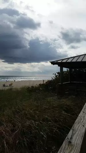 We spent a gorgeous day here at Stuart beach. There are small dunes along the beach where you can get somewhat protected from the wind. The day we were there it was windy and the surf was high with some undertow so you have to be careful with kids. Also the bathrooms were closed and were being remodeled. No snack bar in the area.
