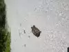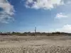 Colony of terns and skimmers at the far end.
