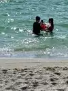 We didn’t swim as we weren’t brave enough, but there were about 8 people in the water.
