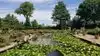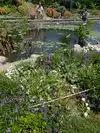 Lots of flowers and other plants here. Tiered flower beds going down to ponds filled with lily pads is very nice. Some fish in the water as well.