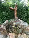 Although it was a hot day outside, there was a lot of shade in park though the flowers around the Koi pond were stressed from lack of water. That was depressing for me to see a lot of plants wilting. I wish there was signs saying what kind of plants they planted. Other than sitting on a wall ledge, I didn't see any places to sit in and around the pond up to the statue of the water lady. A beautiful place for pictures of people and flowers. Highly recommend this place. The public water fountain squirted way past the fountain so it was hard to get a drink.