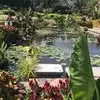 There is a pool that is great to rest on the side. So much to take in! Many varieties of flowers and plants. If your on the bike trails, a great place to stop for a rest.