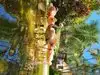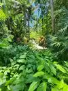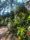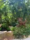 Compact. Vintage feel. High density of tropical plants and trees with an unusually large and rare collection of Madagascar palms, plants, and trees interspersed. Mature growth provides a shaded canopy. The small assortment of parrots, flamingos, macaws, tortoises, and koi add to the tropical setting.