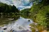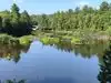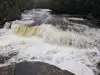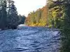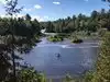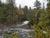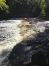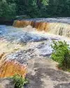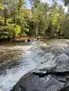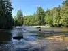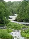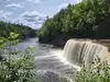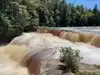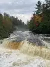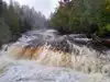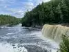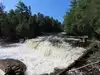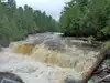 The Falls Lower and Upper are unique with the brown streaks in the falls. The water is notably brown in color from the tannins leached from the cedar swamps which the river drains. Mosquito repellent is mandatory.