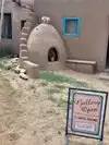 the ruins and cemetery of the 3rd iteration, built in 1726, still exist and are seen on the tour. Once the tour started, our guide talked about the early days of Taos Pueblo and how Spanish explorers were attracted to the Pueblo in 1540 thinking it was one of the Seven Cities of Gold. Our guide walked us around the Hlauuma (North House) and Hlaukwima (South House) compounds explaining things as we went as well as presenting more history. We could see the Adobe constructs up close and ask questions. In particular, when asked what native American Indian tribe her family associated with the most, our guide said they consider themselves to be Pueblo Indians first. I don't want to spoil the tour for you, so I'll leave things as they are except to say that the tour was well worth my time. Along the tour, there were a number of native vendors outside and inside some of the first floor residences (that we hit after the tour concluded). I'd encourage you to go inside a couple of these first floor shops so you can see the rooms inside the Pueblo. Plus these shops have manmade pottery, jewelry, skins products, instruments, artwork and food. Stop by the Adobe Cafe for coffee and fry bread.