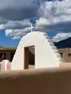 Taos Pueblo is a sovereign nation located 3 miles NE of Taos and is a UNESCO Living World Heritage Site as well as a National Historic Landmark. Taos Pueblo has been continuously lived in for over a 1000 years. (Acoma Pueblo, west of Albuquerque, has a similar distinction). Homes in the Pueblo (communal village) are made of Adobe with ladders providing access to the upper levels. There is a running stream that bisects the Pueblo. This stream is the main source of drinking water for pueblo residents, and further down the stream, a source for fish. According to a website I visited, "In accordance with pueblo traditional laws, Taos Indians who live inside the ancient village do not have running water or electricity. They rely on skylights or kerosene lamps for light, and use outhouses that are hidden from public view".