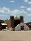Taos Pueblo (or Pueblo de Taos) is an ancient pueblo belonging to a Taos-speaking (Tiwa) Native American tribe of Puebloan people. It lies about 1 mile (1.6 km) north of the modern city of Taos, New Mexico. The pueblos are considered to be one of the oldest continuously inhabited communities in the United States.