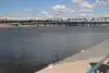 This park adjoins the Tempe Town Lake, a shallow (16' deep) artificial lake created by damming the Salt River. Swimming is not allowed, except during the triathlon event, but plenty of rowing crews and sailors enjoy boating on the lake. The beach is one of many locations for July 4 fireworks, but due to its proximity to ASU it is very crowded. Not worth a special trip, in my opinion.