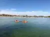 We had a blast here for a couple of hours. It is located in a nice Tempe neighborhood, close to businesses, restaurants and ASU. We rented a tandem kayak for an hour. The water was refreshing considering it was midday and 100 degrees! The water is clean and not overcrowded. There are places to boat as well. There were a few homeless people in the area but they didn't bother anyone. The park was clean and nice, no graffiti in sight. I did not see any area to swim, however, this is more of a reservoir turned park, not necessarily a place to swim.