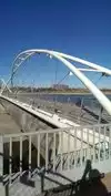 Both bridges also decorate and add visual volume to the scenery, and they also enhance the meaning and significance of Tempe Town Lake in the contemporary life of the city.Tempe Town Lake is popular for sailing, kayaking and rowing. From the bridge, it looked very peaceful and beautiful on a sunny day.