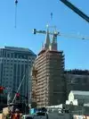 The area on either side of the temple had been excavated with deep pits like the foundations of large buildings are going in. The Temple has scaffolding on top. Looks like a years long renovation is taking place.