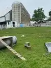 The horse area has empty hay bins and hay shelter and there is trash all around the walkways including shredded trash where the grounds mowers runs over candy wrappers etc shredding them into pieces
