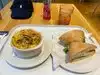 Food: I initially trekked way up the stairs to the cafe above the Modern wing but it was way overcrowded, no sandwiches and $15 for a snack of grapes and cheese! Instead really enjoyed a late lunch at the marketplace which has a nice view out into the back courtyard —- was excellent but pricey at $35 and enjoyed a a caprese sandwich on ciabatta and French onion soup and a juice. They were closing around 3:30-4 it seemed though.