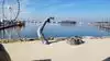 Great, partially submerged-in-sand metal Neptune sculpture. Kids love to climb on it, a great spot for photo-ops. You first see a huge arm and hand emerging from near the water. When you get closer, you see it is the head, feet and arms of Neptune. As a companion remarked, "Thank Goodness some of him is buried!"