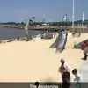 This is amazing! Large, sandy area that the kids and adults both loved right next to the river. Sculpture is fantastic! There is also a huge outdoor screen for watching sports games and movies . This is free.