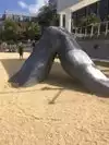 Taking into account that most of the body is not visible, I initially thought it was the statue of a swimmer. I guess you can also think of it as a guy who wakes up and you see only the body parts that come out from under the bed sheet (sand). This statue is especially fun for kids. They attempt to climb on the face and on the limbs. The most attractive seems to be the knee, where the kids line up to climb, then slide back down (pretty bumpy ride and not the safest slide). As an added "benefit", they get metal residue everywhere their body or their clothes brush against the statue.