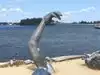 Metal sculpture of Zeus buried in sand, great place for kids to get in the sand, climb on the sculpture parts and burn off energy, right on the Harbor so a beautiful location