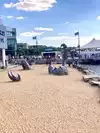 Nice little sandy area on the harbor where you can sit for a bit or in the case of the many children I saw, run around and climb on the sculpture. There are a half dozen Adirondack chairs available but you can bring a blanket to sit on and something to snack on. And hey...it's free!