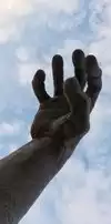 Some people have told me this is spiritual but it just felt to me that it was a person drowning in quicksand. I guess it's one of those you either see the glass half full or half empty. I think it is supposed to be someone coming up out of the sand but I think it appears they are drowning. I felt it disturbing but again... each to his own. It was an amazing sculpture job when you look at the work itself without looking at how it is positioned.
