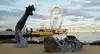 I really like this thing. It's a pretty area at sunset with the Ferris wheel and the giant breaking forth from the sand. There are several unusual sculptures in the area, including a naked fat man on a turtle.