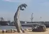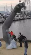 Neat display right on the water. Kids were digging in the sand, climbing on the hand, head and arm of this mythical creature. Very cool