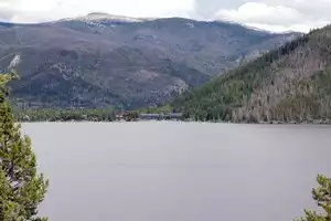 Beautiful lake tucked in the mountains!! Lots to do..beach, rent boats, walk around the lake. Worth the drive from trail ridge road!!