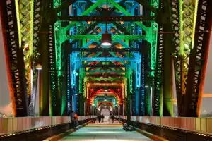 MUST SEE!! You can walk over this bridge and there is a nice park there. I went both during the day and at night. It's really pretty and you can get some pics of downtown Louisville in the distance. At night, it's lit up and very pretty. One of the best places I went in Louisville. Nice way to burn calories while seeing some pretty scenery and learning some history about the bridge.