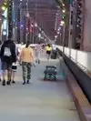 Bridge was not illuminated when we went. Bummer. The ramp to get up and down is very easy to walk, bike, scooter. There isn't a designated traffic flow, so watch out for scooters or bikes that just drive anywhere they want.