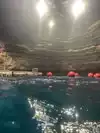 Glad we went for a nighttime swim in this unusual crater for a one and done. Go a bit early to see it from the outside first— anyone can walk up to the top and look in. It’s a marvel. There’s not much thought given to the swim experience itself and it could be improved. A staff person is on hand to check people in from behind a counter in the hallway area, but I wish she would have spoken to the group while we swam. We received no info about the crater, just “grab a life vest.” She never came over to the water. The water was bathtub warm which must be nice in the winter, but it felt like swimming in a heated pool at night with a bunch of other people. I was hoping for dim lights and tranquility — maybe soft music? It was actually echo-y, loud and pretty crowded. It was a clear night and I tried to see stars through the crater opening above, but the fluorescent lights were too harsh & blinding.