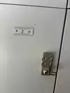 There's no locker to be seen, however, there was one outside the building around the corner.