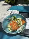 There is a cafe on the first floor where a good variety of meals are offered. Dine in the air conditioned cafe or outside in the large covered patio area with fans overlooking the splash pad for the kids.