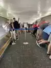 When you head to the tram, you'll be given a tram number by the first tram person you encounter (there are 8 tram cars). From there you head to the trams and line up on your number.
