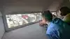 The tram cars are small 5 people max and really only 4 adults. The ride up takes 4+ min. Once up you exit the car and walk up the stairs to the observation area. Each side (north/south) gets to view one half of the observation area. The windows are small but the views are good. After 8 to 10 min. you'll head down in the same car number you came up in.
