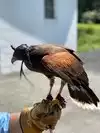 Seeing the variety of birds and interacting with them was great - falcon, eagle, owl, hawks. I think the small eagle was very nosy & friendly - it kept looking through the window at us and "talking". It was very interesting to hear the history, see the training methods, and "take a walk" with the Harris hawk. Of course, getting to have it perch on your gloved hand if you wanted to was the best! Thoroughly enjoyable all around.