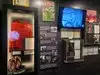 Lighting is poor, making the information difficult to read. The shoulder to shoulder nature of the crowd in the tight space makes navigation between the 2 sides of each hallway difficult.