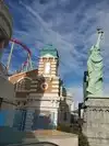 我們真正的 Las Vegas 遊,就由我們下榻的酒店,Excalibur 開始。行到出過馬路的行人天橋,一邊是帶古式的城堡酒店,而另一邊,就是紐約 City 主題的酒店。而 New York City 的酒店,附設有一部過山車,周不時聽到有人在大叫呢。