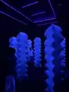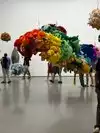 There are other fascinating exhibits: colorful stiffed aimals hanging from the ceiling in clumps.