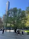 It is quiet and very neat. The area also has a nice view of the One World Tower since it is located at the base of it. It is fairly easy to get to with the World Trade Center station nearby. It is a nice place to walk around with your thoughts.