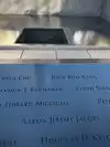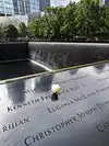 On the edges of the basins, engraved on bronze plates, are the names of the victims of the attacks of September 11, 2001 and 1993. Sometimes you can see a rose tucked next to a name: it's how that person's birthday is remembered.
