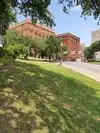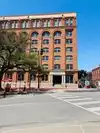 Some "JFK trolley tours" depart from one of the adjacent streets of the building