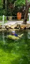 * The animals all live in natural seawater lagoons. This means the water is not the chlorinated aqua color you see at commercial places like Sea World. Theater of the Sea animals live in a much more natural environment (yay!). So if you book an interaction that involves meeting them in the water, know that you can't see the bottom...and there are fish and sometimes crabs in the water. Vince clearly told me this when I called to book, but there was a family complaining loudly about this at the park. If you aren't comfortable with this, book a "meet the" animal and not a "swim with the" animal encounter.