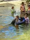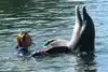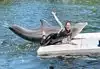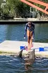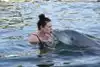 After the dolphin show was over, then came the various activities in which members of the public were allowed to swim or interact with different types of animals, directly. For us, it was swim with the dolphins, and it was a lifetime memory. To be honest, it was VERY brief. Just one or two minutes in the lagoon with the dolphins, per person. Primarily focused on capturing a dorsal fin ride, carried by two of the well-trained dolphins. Afterwards, one of the dolphins swam up to you--in a shallow area--and you were able to hold the dolphin, pet it, and get your picture taken with the dolphin. Too short? Absolutely. Completely memorable? Absolutely.